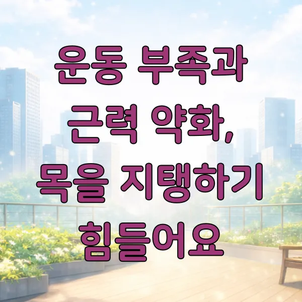 생각보다 많은 분들이 평소에 충분한 신체 활동을 하지 않으시는 경우가 많아요. 운동 부족은 목과 어깨 주변 근육의 전반적인 약화를 가져올 수 있습니다.