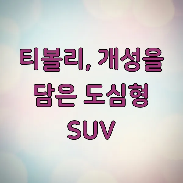 | 티볼리 | 도심형 SUV | 개성 있는 디자인, 합리적인 가격, 다양한 옵션 |