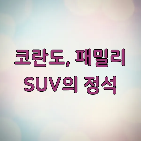 | 코란도 | 패밀리 SUV | 넓은 실내 공간, 안정적인 주행 성능, 합리적인 유지보수 |